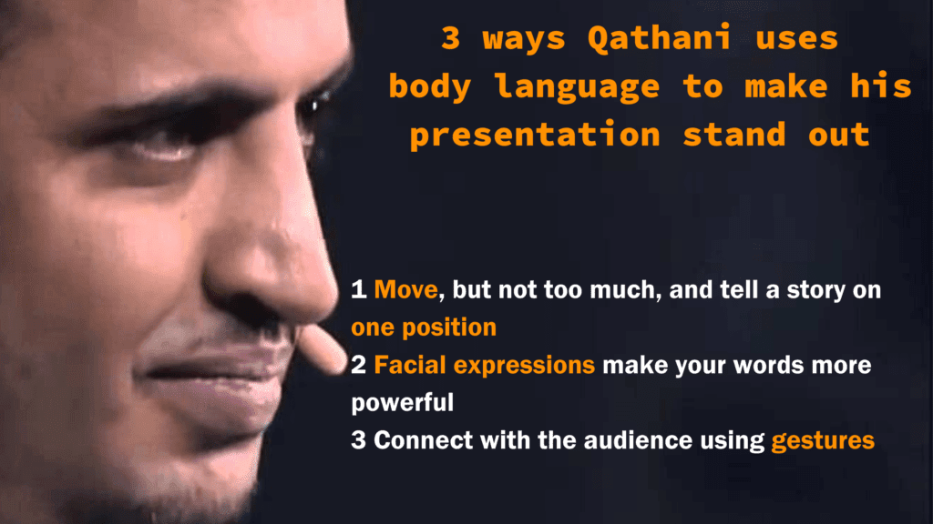 In the last video we discussed how World Champion Public Speaking 2015, Mohammed Qathani, uses some smart techniques that help him capture the attention of the audience.